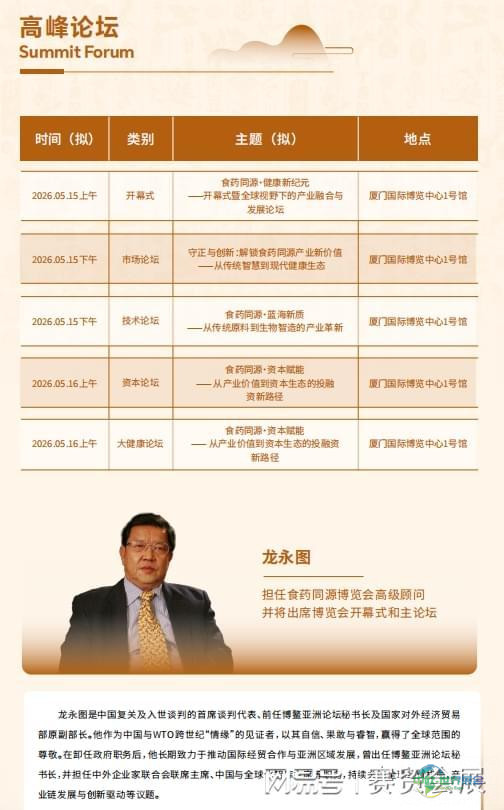 2026年厦门将主办食药同源产业创新博览会