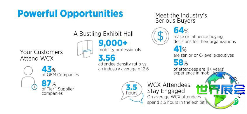 美国底特律汽车软件设计工程供应链展览会(WCX)是由美国汽车工程师学会主办、当今全球汽车领域最具影响力的权威盛会,亦是目前规模最大的汽车专家年度会议;同时也是各国顶尖汽车制造商及零部件供应商进行年度交流的重要平台。