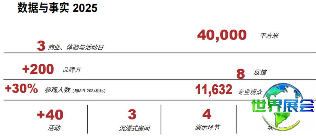 意大利国际娱乐、音响和舞台照明展览会(MIR)是南欧地区最具规模的专业展会之一。聚焦于音乐会、演出、影视及活动领域的技术方案,覆盖音频、视频、照明设备及系统集成。