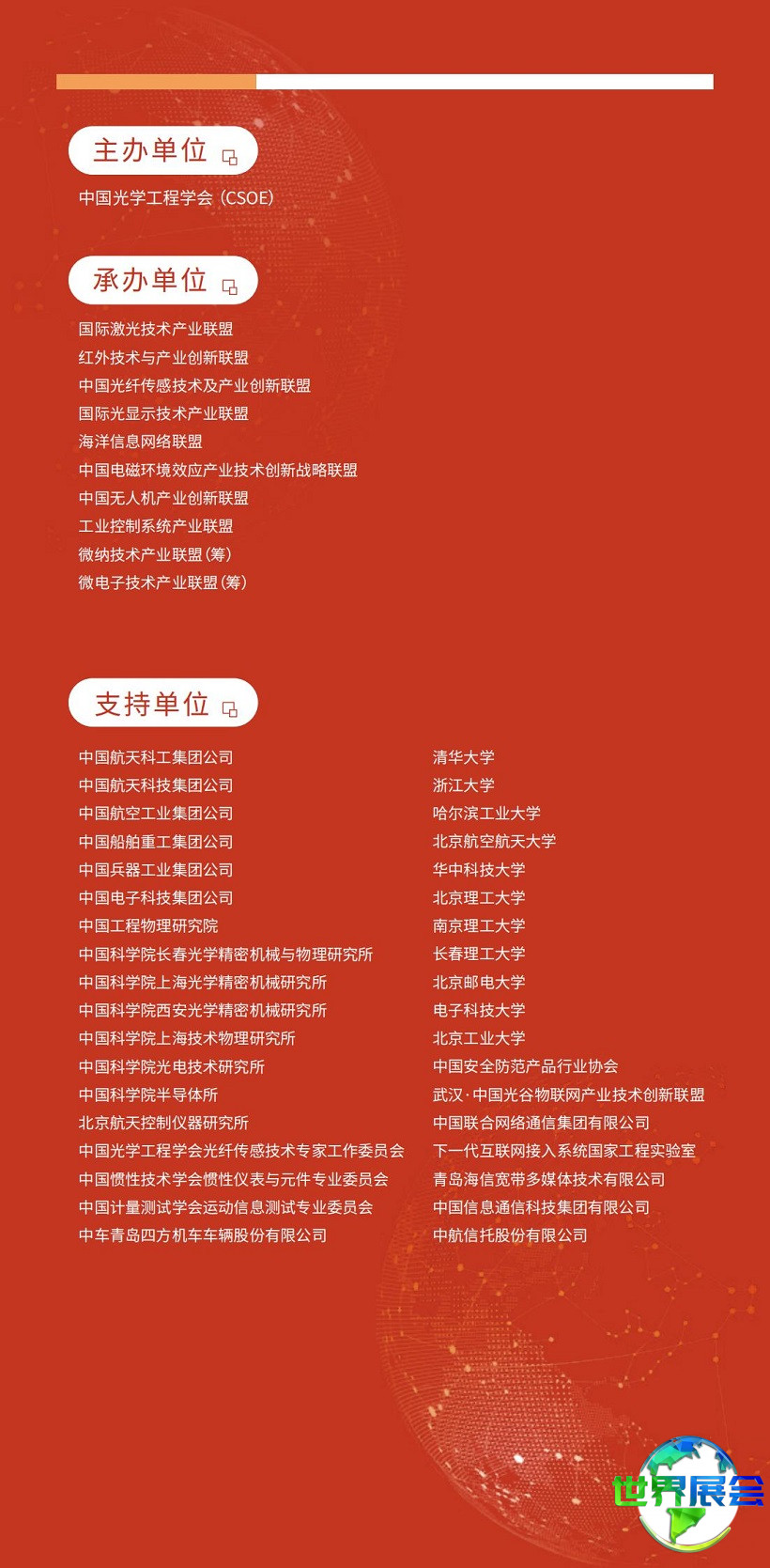 本信息由中欧世界展会网工作人员编辑整理,我们是一个整合全球展会时间地点、门票购买、展位申请、设计搭建的服务平台,为您提供北京光子大会展位预订服务。