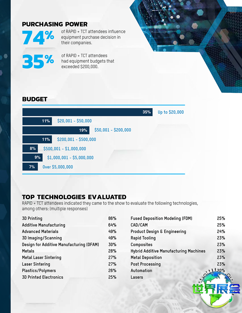 本资讯由中欧世界展会网工作人员汇编,我们是一家整合全球展会时间地点、门票购买、展位申请、设计搭建服务的平台,为您提供美国3D打印展展位预订服务。