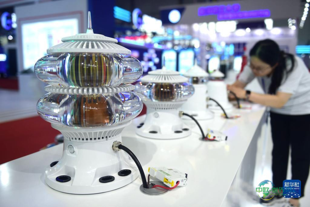7月12日,航海科技博览会展出了支持北斗远程数据的智能化航标灯。