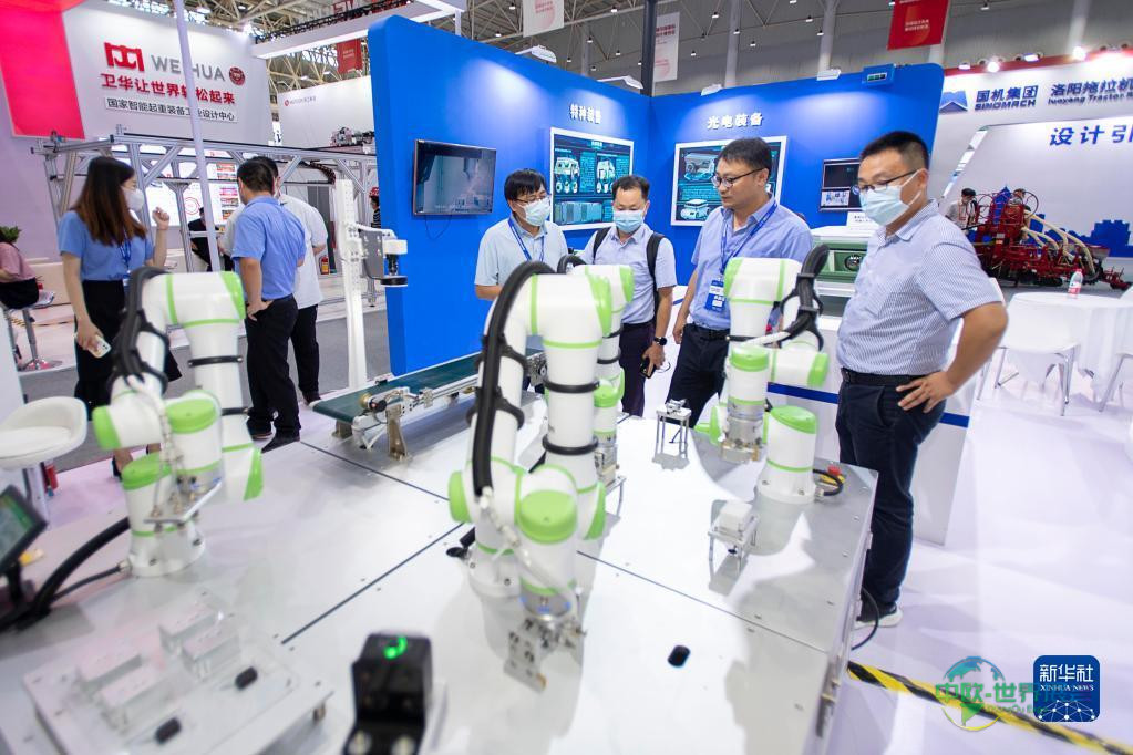 8月5日,参观者在湖北沃可智能展台进行观摩。