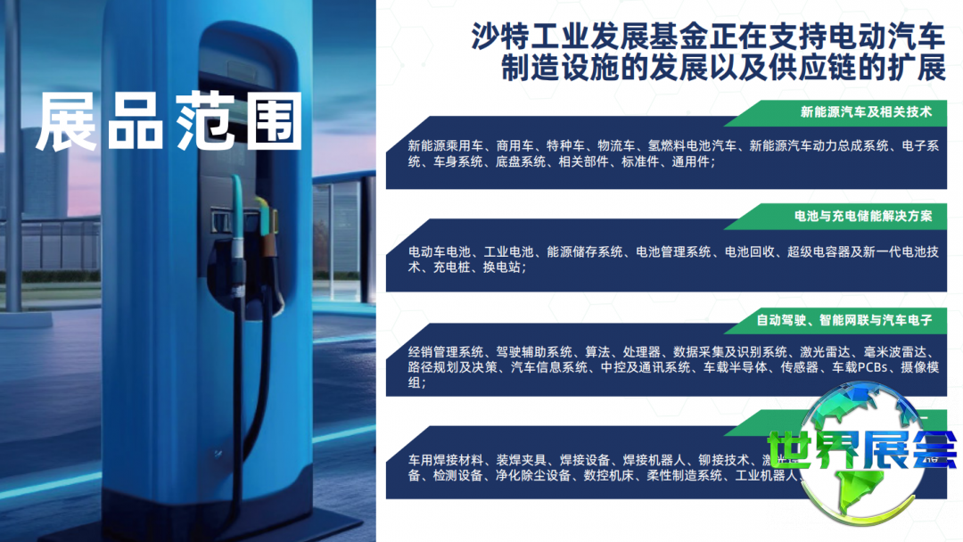 沙特电动车展汇聚展示了行业最前沿的产品、技术及相关设备,凭借其广泛的展品类别和专业化服务,已成为业内决策者高度认可的专业展览。