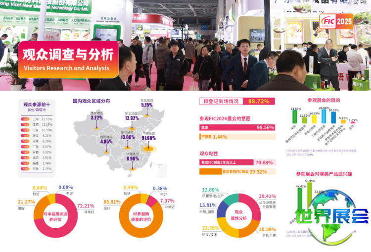 中国上海国际食品添加剂和配料展览会(FIC)将集结全球约1700家参展商,迎接超过15万名专业观众,共同关注食品添加剂与配料产业的最新发展趋势。无论展会规模还是参展商数量,均有望创下历史纪录。