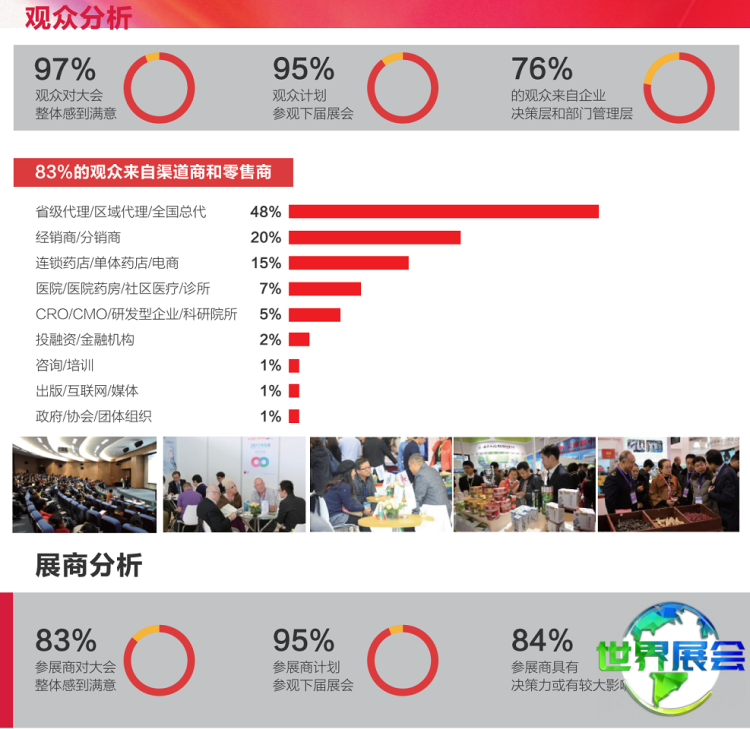 作为医药大健康领域的专业展会,本届展会吸引了极高的行业参与度。包括国药集团、通用技术中国医药、人福医药、复星医药、广药集团、华海药业、哈药股份、悦康药业集团、安徽贝克、雷允上、振东健康、新华制药、石四药集团、珍宝岛药业、葫芦娃药业、北京同仁堂、亿帆医药、普洛药业、创诺制药、倍特药业、金城医药等在内的数百家国内医药工业百强及上市公司均将设立展台。同时,来自北京、四川、湖南、福建、海南、贵州、甘肃、新疆等地的十余个省市展团也将集体登场,在此展示品牌、推广新品,与业界同仁沟通交流、探寻商机、探索合作可能。