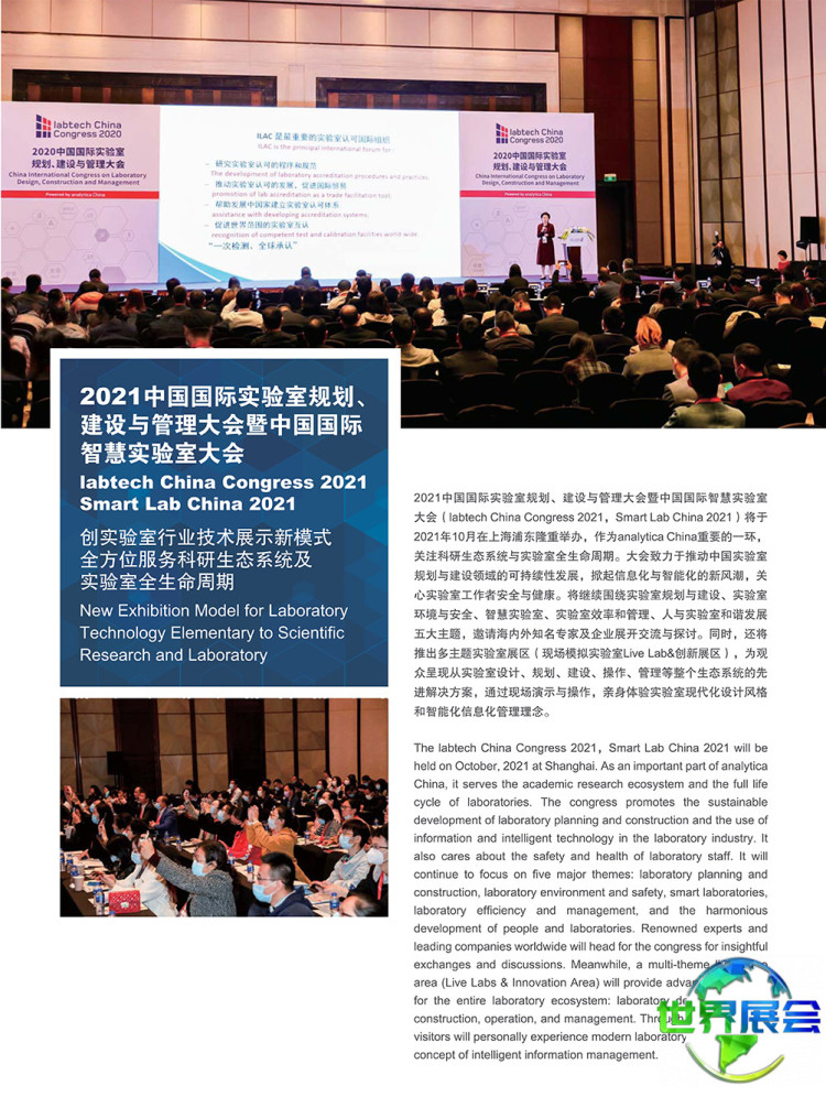 慕尼黑上海国际分析生化及实验室展览会(Analytica China)是亚洲地区分析生化领域最具权威性的行业盛会。由德国慕尼黑国际博览集团主办。该展会为行业领先企业提供了全方位展示创新技术、产品与解决方案的舞台。