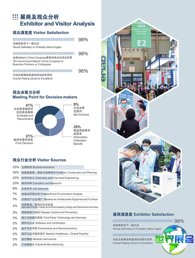 上一届慕尼黑上海分析生化展Analytica China的展览总面积达50000平方米,吸引了来自德国、美国、日本、韩国、印度、俄罗斯、巴西、中国香港等地的848家企业参展,参观者数量达到30852人次。同期举办的研讨会与论坛以其前沿议题、高水平演讲和专业化组织,持续吸引着越来越多参展商和观众的关注,成为展会的重要特色。这些活动聚焦行业整体发展,是科技与产业技术交流融合的理想平台。