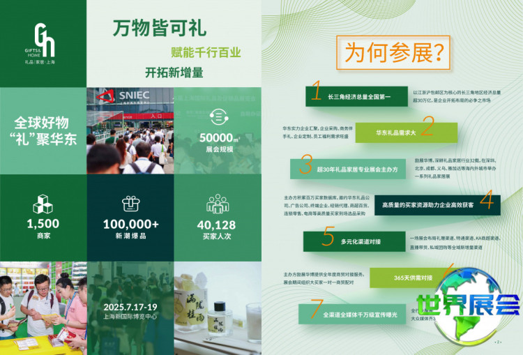 作为励展华博打造的全球顶尖礼品家居系列展会之一,上海国际礼品及促销品展览会(GIFTS HOME)依托其显著的行业号召力与资源聚合优势,已发展成为华东区域礼品采购的首选盛会。
