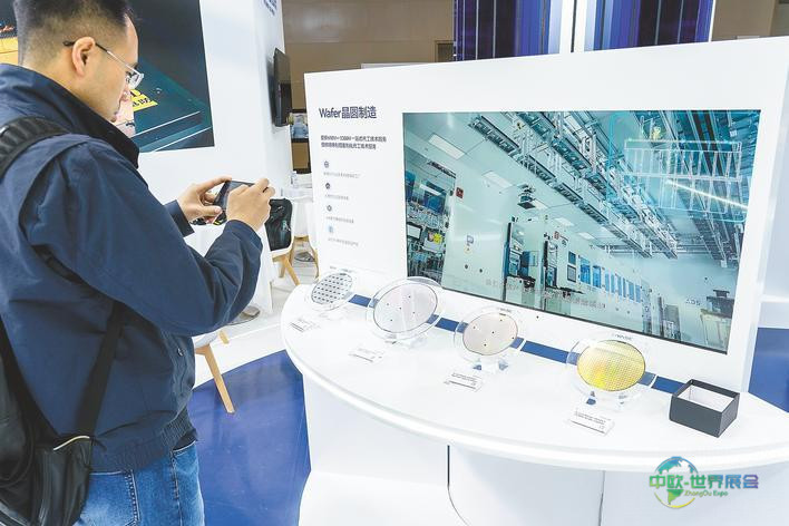 长飞先进展台前,观众正在参观新型晶圆产品。