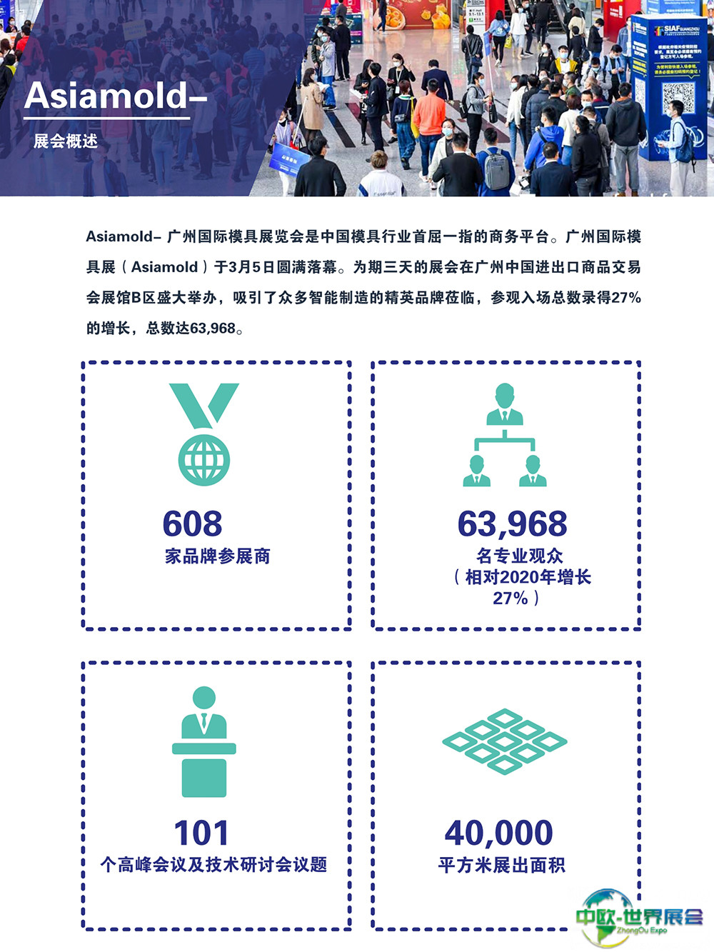 本资讯由中欧世界展会网工作人员整理编辑,中欧世界展会网是一家汇集全球展会时间地点、展位申请、门票购买、设计搭建的服务平台。