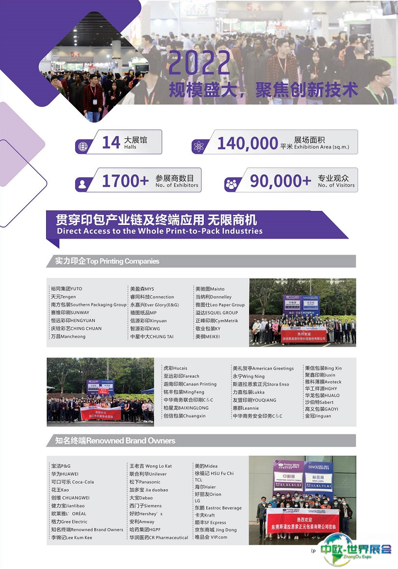 中国广州国际包装制品展览会(PACKINNO)高度持续聚焦包装热点,锁定行业知识重点,升级“创新、绿色、环保”主题。展现创意包装设计获奖作品,凝聚包装行业重量级龙头企业、知名企业和特色包装企业齐聚一堂,打造亚洲包装制品领域的极具影响力的盛会。