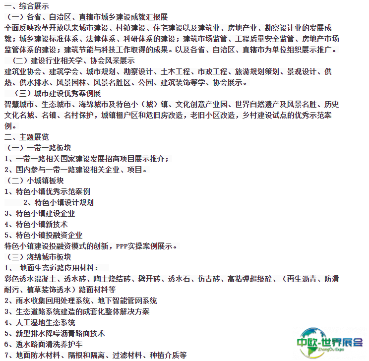 中国北京国际城市建设展-中国城博会(China International Urban Construction Exposition)是经商务部批准、住建部支持的反映城市建设成果的综合性展会。在住建部历届领导的关怀和支持下成长起来,旨在展现中国城乡建设行业发展成果的大型博览会,是国内规模最大的综合性城市建设展览活动。
