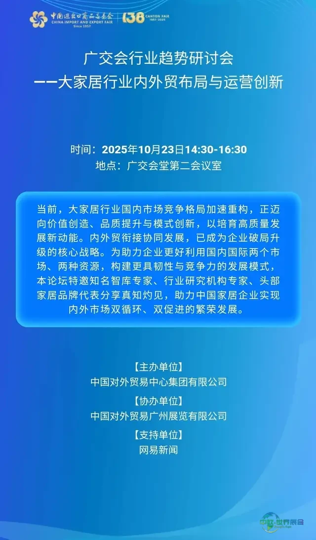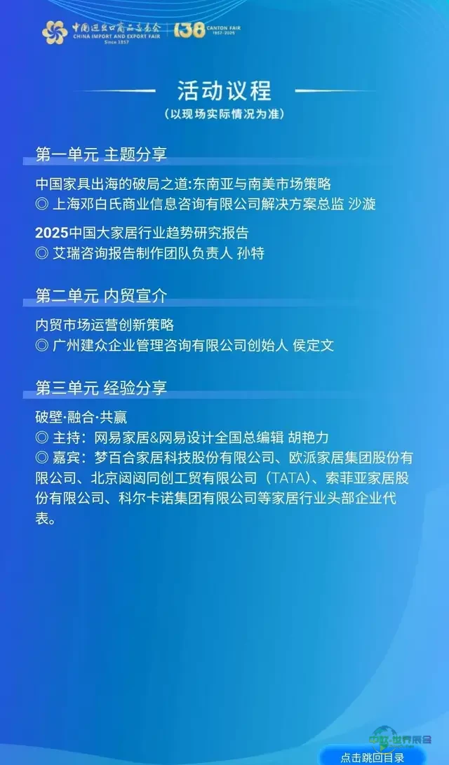 大家居行业国内外市场开拓、跨境电商新业态、“一带一路”经贸法律服务合作,助您把握行业脉搏,开拓市场新机遇。论坛详细议程已确定。