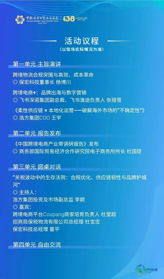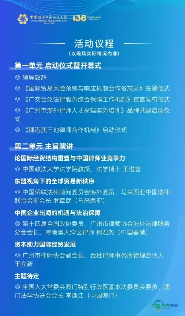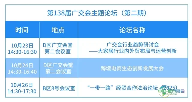 第138届广交会,围绕防风险、拓市场、研趋势、促内销4大主题共举办13场主题论坛。其中,第二期将举办3场。